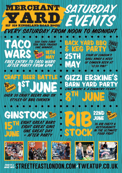 This is not all! Tweat Up which organizes Street Feast, also organizes a series of events on Saturdays, all food-themed of course! Past events include Taco Wars, a Craft Beer Battle and a BBQ & Keg Party. If these make your mouth water, head there tomorrow for the Barn Party of talented Gizzi Erskine, Ginstock on the 15th of June, and Ribstock on the 22nd.